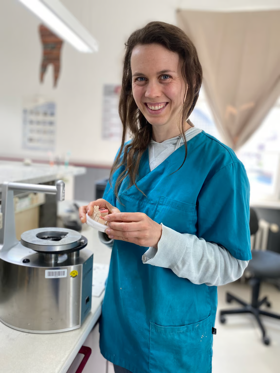 „Ich finde es faszinierend, wie in aufwändiger Feinarbeit und mit viel Geschick aus unscheinbaren Materialien wie Metall und Kunststoffpaste ein wunderschöner Zahnersatz wird, der täuschend echt das Farb- und Transparenzspiel der Zähne im Licht wiedergibt!”