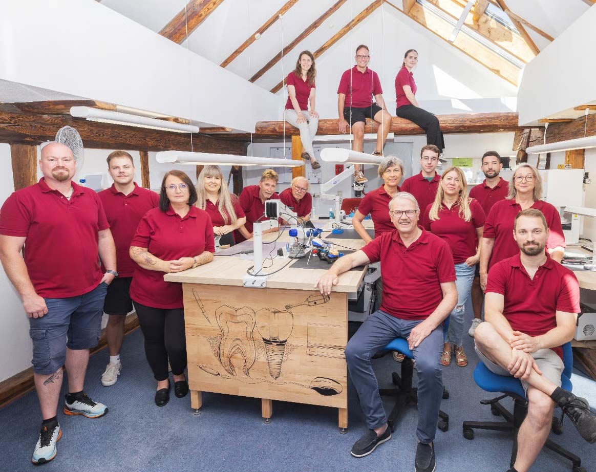 Ein Team mit hohem Anspruch an Ästhetik, Präzision und Zusammenarbeit. Ca. 22 Mitarbeiter begeistern Kundinnen und Kunden bundesweit mit hochwertigem Zahnersatz und leidenschaftlichem Einsatz. Dabei wird Wert auf Qualität, Teamgeist und Menschlichkeit gelegt.